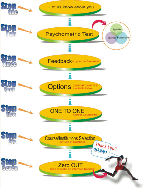 As knowledge services company, Eduken will provide you all the tools and information necessary to make a final choice. Our trained counselors will guide you through our 7 step process to zero out on the final decision.